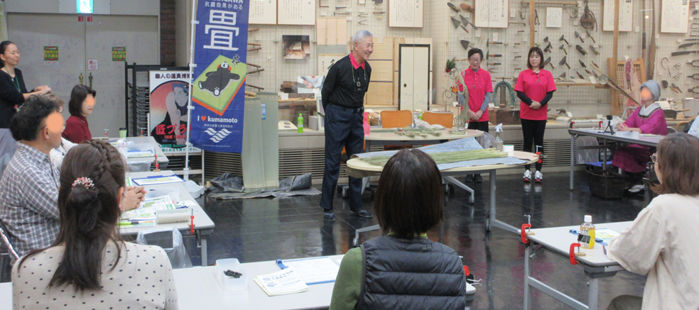 「現代の名工」に認定されている畳職人(疊師)の神崎征美氏を講師にお招きし、材料のい草(熊本産:日本一の産地)や畳(畳表のできるまで・機能・効用・お手入れの仕方等)についてのお話を伺いました。